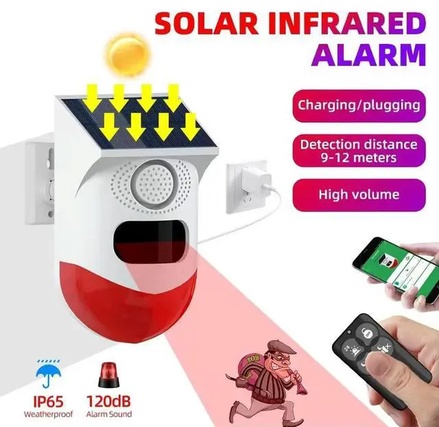 Solar Security Infrared Siren Remote Control Motion Activated Detector Alarm Waterproof Infrared Alarm System for Home Farm Yard