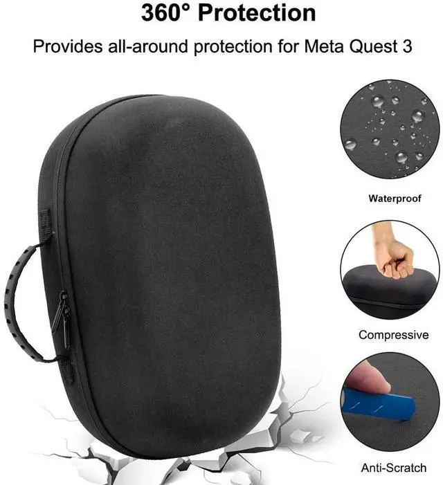 Hardshell Case with Lens Cover Shockproof Protective Box Anti-Scratch Mesh Pocket Bag for Quest 3 VR Headset Accessories