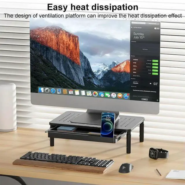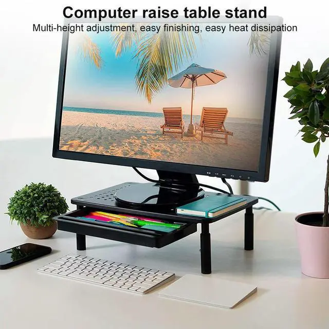 Monitor Stand Riser with Drawer Desk Laptop Stand 3 Height Adjustable Computer Printer Shelf for Laptop PC Printer