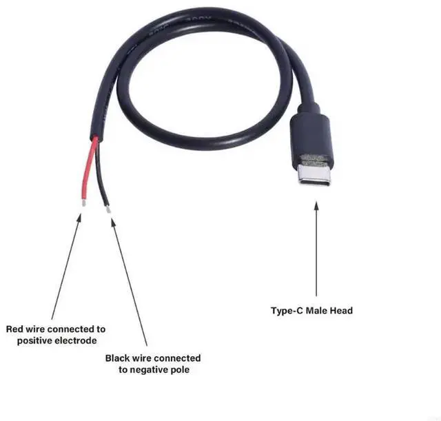 USB C to 2Pin Bare Wire Open End Cable 5V/2A USB Type C Male 2Pin Pigtail Power Wire Replacement DIY Cable for LED Light