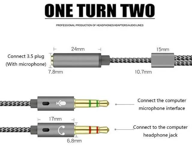 Headphone Splitter Cable for Computer 3.5 mm Female to 2 Male 3.5 Jack Mic Audio Y Splitter Microphone Adapter Aux Cable