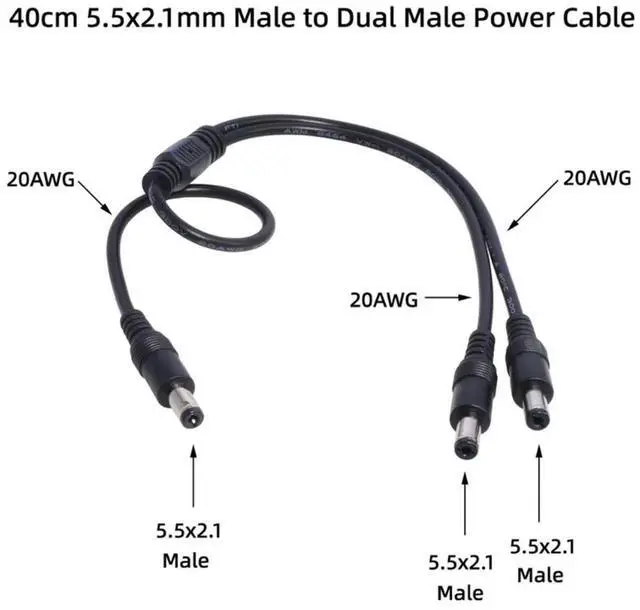 5.5mm*2.1mm 1 Male to 2 Male Connector Male to Male Plug DC Power Splitter Cable CCTV LED Strip Light Power Supply Adapter