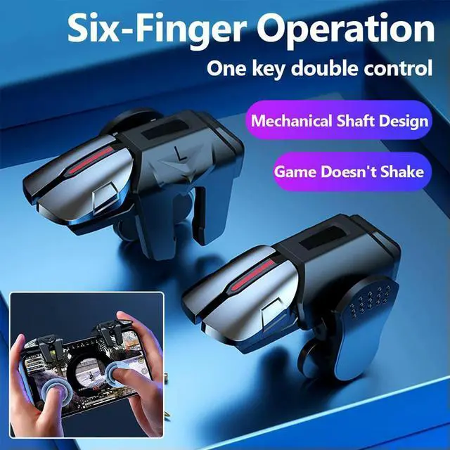2pcs 6 Finger Gaming Trigger Latency-Free Control for PUBG Game Physical Buttons Game Controller for Ios Android Mobiles Phones