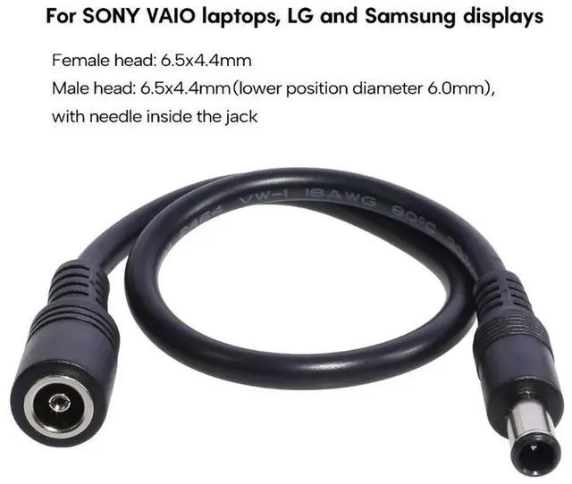 Dc Power Jack Connector Laptop Charger Cord 6.5x4.4mm Male to Female Extension Cable Converter for Viao for Adapter