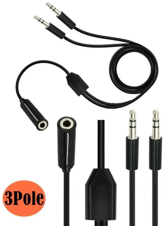 3.5 mm Audio Female to 2x 3.5 Plug Male Adaptor Cord Cable for PC Computer Speakers 3.5 One Female and 2 Public Audio Source Share