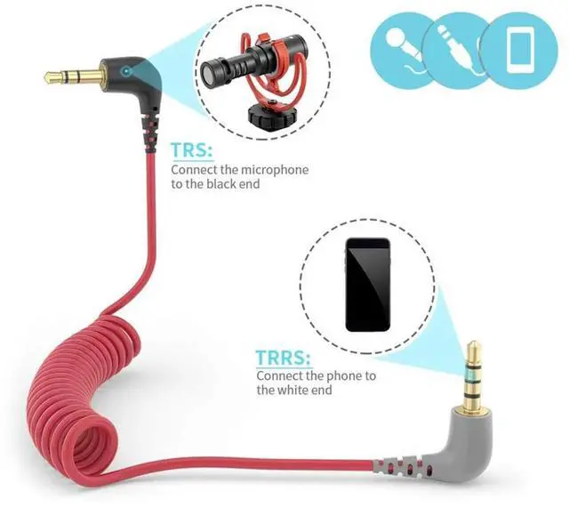 TRS to TRRS Microphone Cable 3.5mm Male to Male Right Angle Patch Adapter Cable Wireless Lavalier Mic Cord for BOYA Rode SC7
