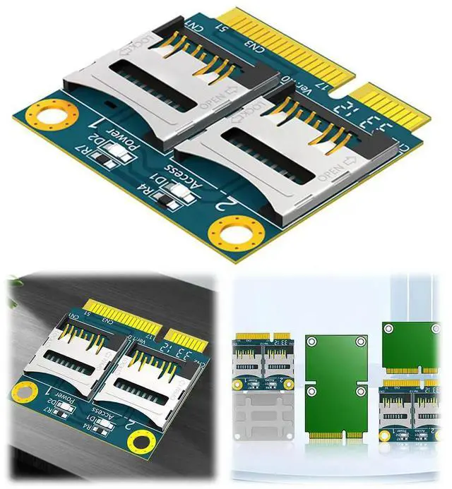 Dual TF Micro SD Card To Mini PCI-E Adapter with Half Bracket Memory Card Converter Memory Card Reader Adapter for Laptop