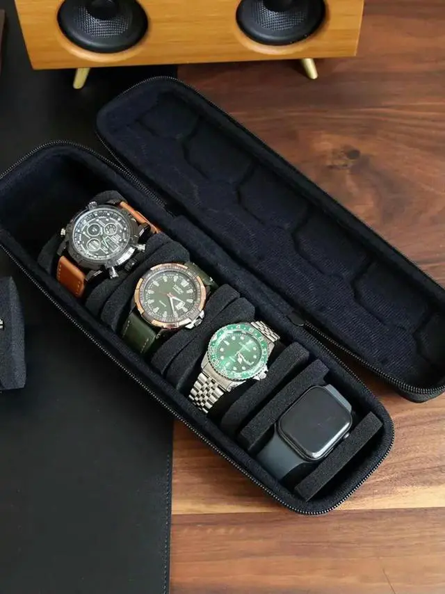 5-Slot Watch Travel Case Roll Soft Foam Pillows Hard Watch Box Organizer Snug Fit All Size Watches Up To 61mm Face
