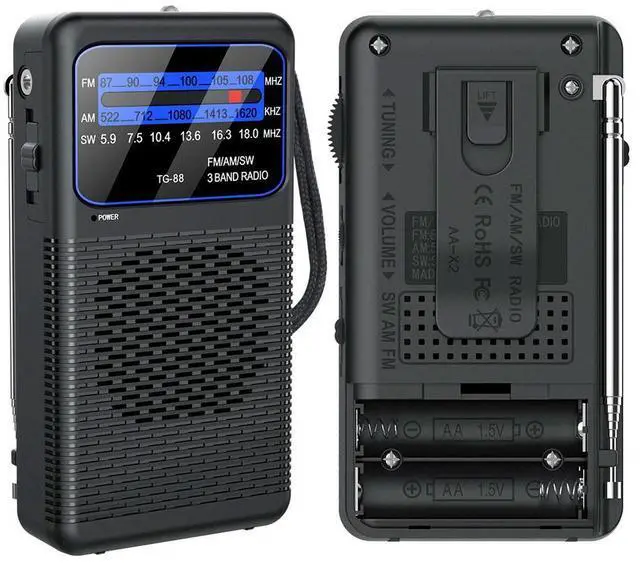 FM AM SW Radio with LED Flashlight Portable Radio with Headphone Jack for Outdoor Camping Seniors Elderly Walking