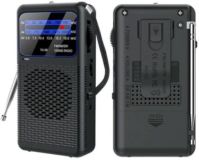 FM AM SW Radio with LED Flashlight Pocket Radio Operated Radio for Outdoor Camping Seniors Elderly Walking
