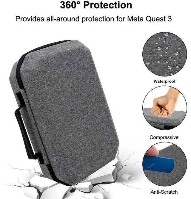 Carrying Case with Lens Cover Waterproof Protective Bag Shockproof Mesh Pocket for Quest 3 VR Headset Game Controller