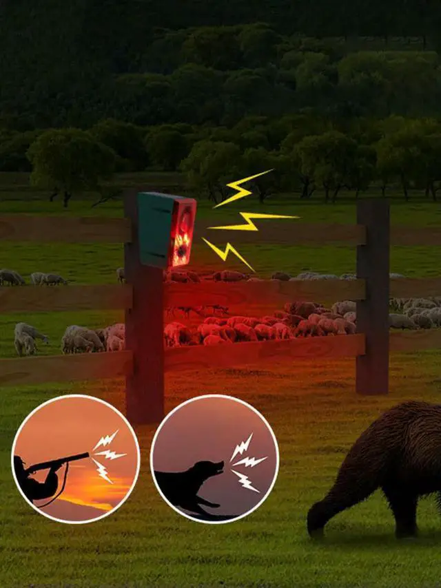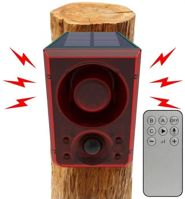 Solar Outdoor Motion Sensor Alarm with Dog Barking Gunshot Sound Loud Noise Maker for Home Villa Farm Barn