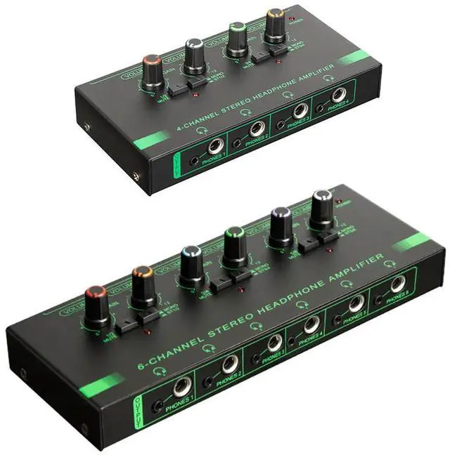 4/6 Channels l Stereo Audio Amplifier Volume Control Ultra Low-Noise Audio Mixer In-Ear Monitoring System 6.35/3.5mm Input