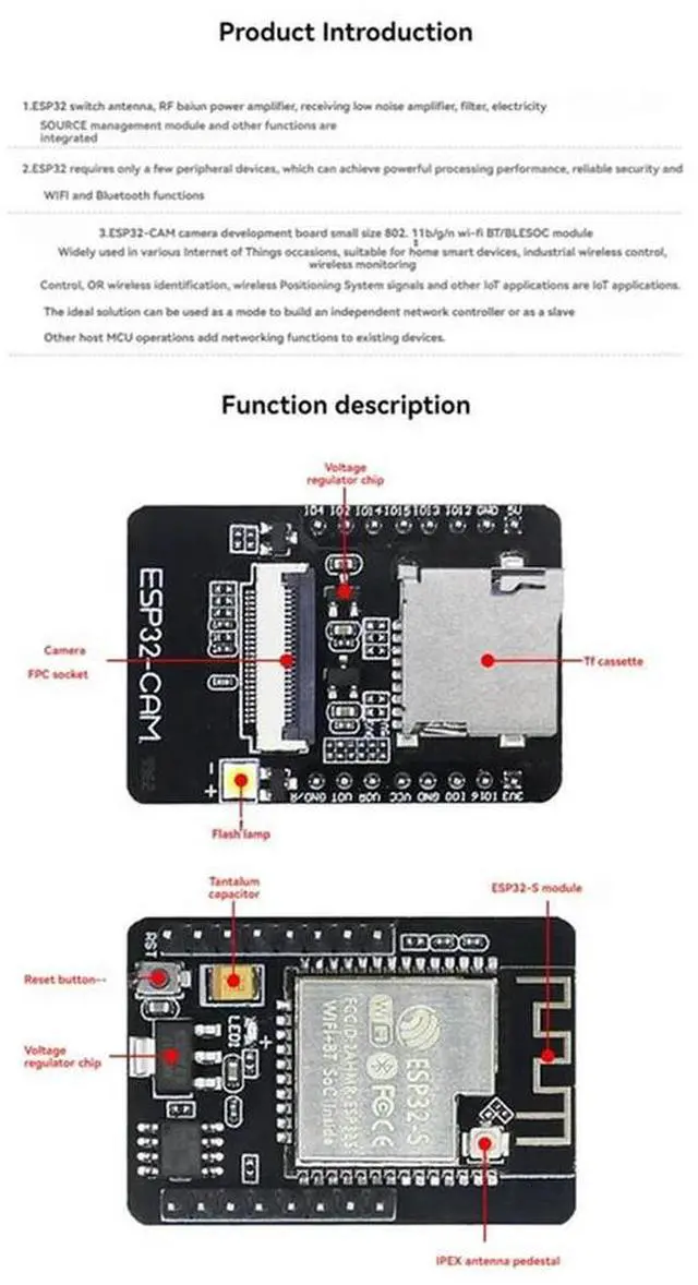 ESP32-CAM Development Board Module ESP32 Bluetooth IoT Motherboard Supports OV2640 OV7670 Camera