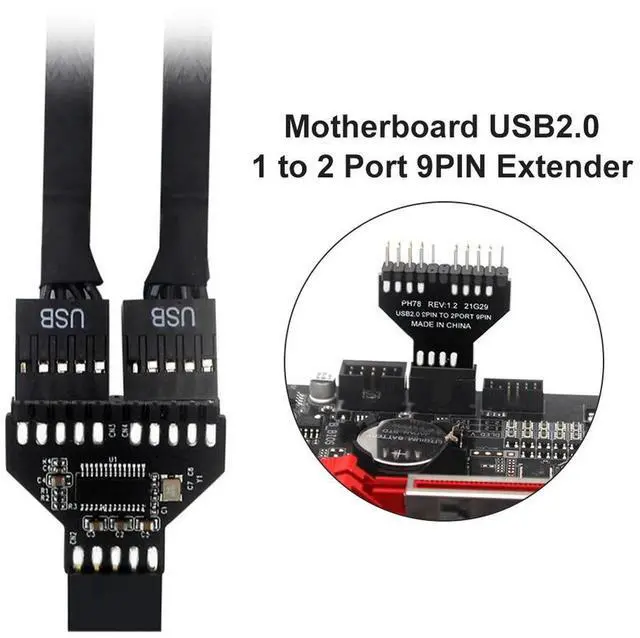 Motherboard USB2.0 9Pin Header Splitter USB2.0 9 Pin to USB3.0 19Pin Conversion Adapter Extension Cable Adapter for RGB Lamp Fan