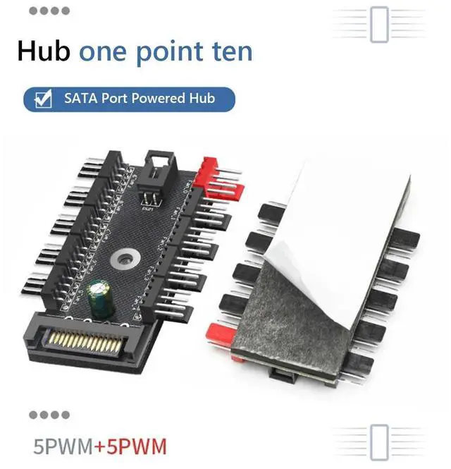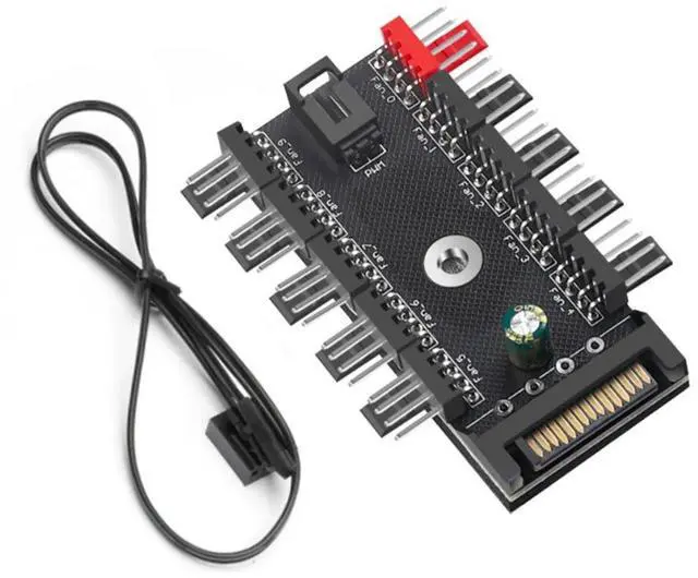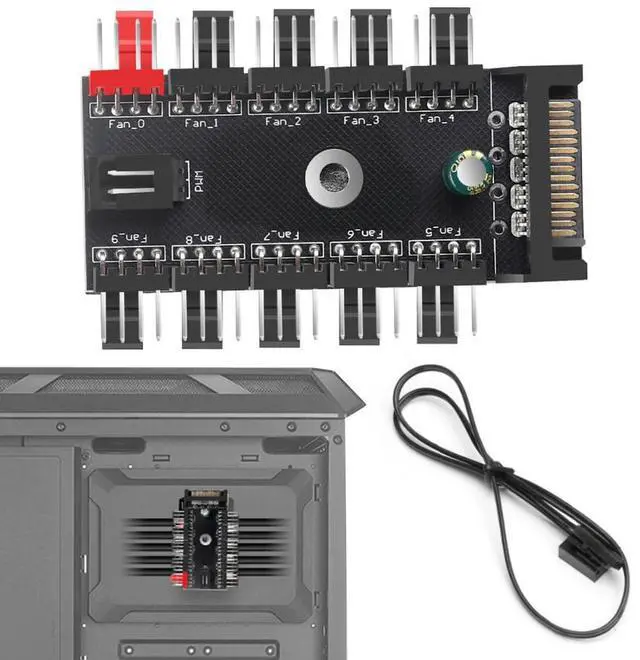Chassis Fan Hub 1 To 10 Way Splitter Hub CPU Cooling HUB Cooler Cooling Adapter for Computer Case 4-Pin and 3-Pin Cooling Fans