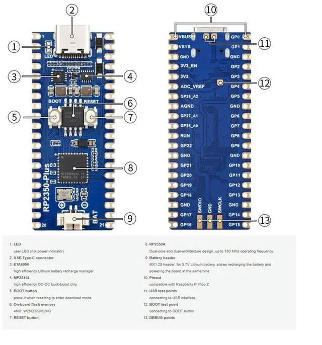 RP2350-Plus Development Board RP2350 Plus Microcontroller MCU Board Based on for Raspberry Pi Pico No Soldered