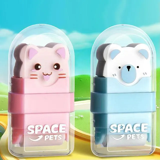 2Pcs Pencil Erasers with Cover and Roller Cute Erasers Funny Erasers Kids Erasers for Kids Back To School Supplies