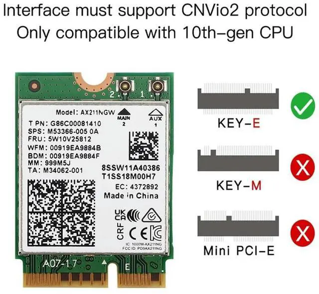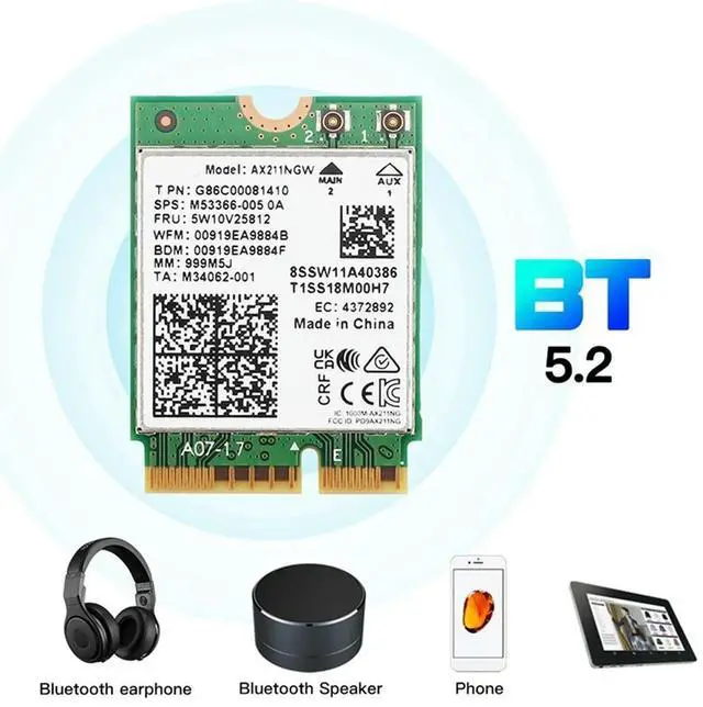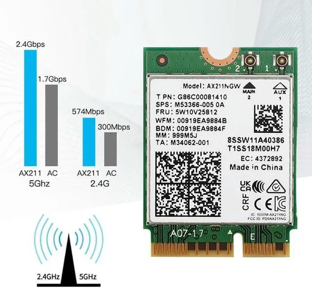 Wireless Network Card AX211NGW+Dual Antenna 6E M. 2 Key E Cnvio2 2.4G hz/5Ghz 802.11A c Bluetooth 5.2 Adapter