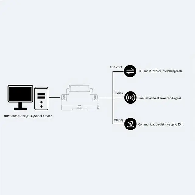 Waveshare TTL To RS232 Serial Converter Rail-Mount Galvanic Isolated Converter 3.3-5V Signal Level Multi-Isolation Protectio