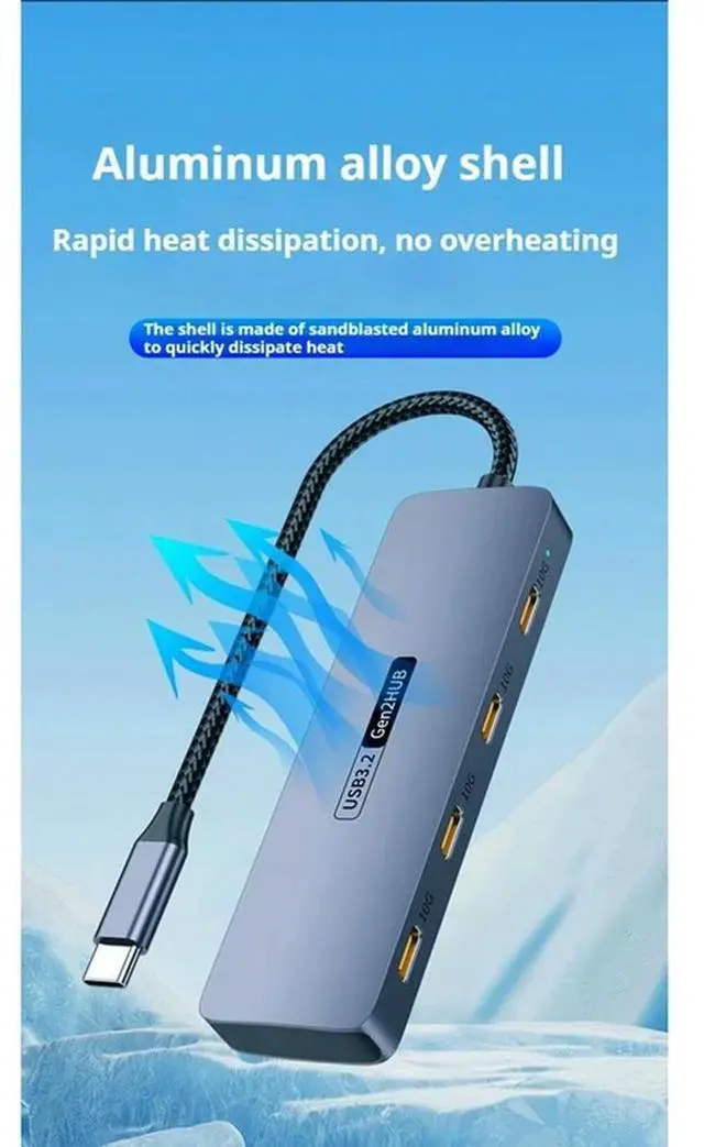 4 Ports USB C HUB 10Gbps High Speed USB C Splitter For Laptops PC Accessories Tablet Phone Hard Drive USB Type-C 3.2 HUB