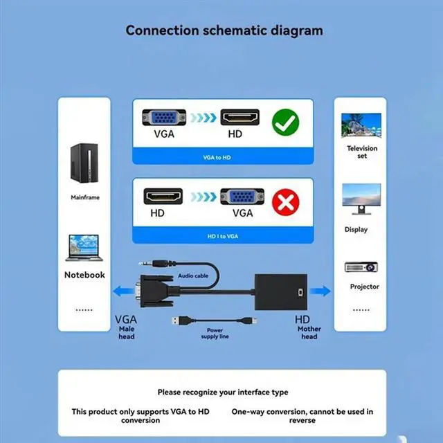 VGA To -Compatible Adapter Converter With Audio And Power AV Converters For PC, PS4/PS5, Set Top Box, TV, Monitor