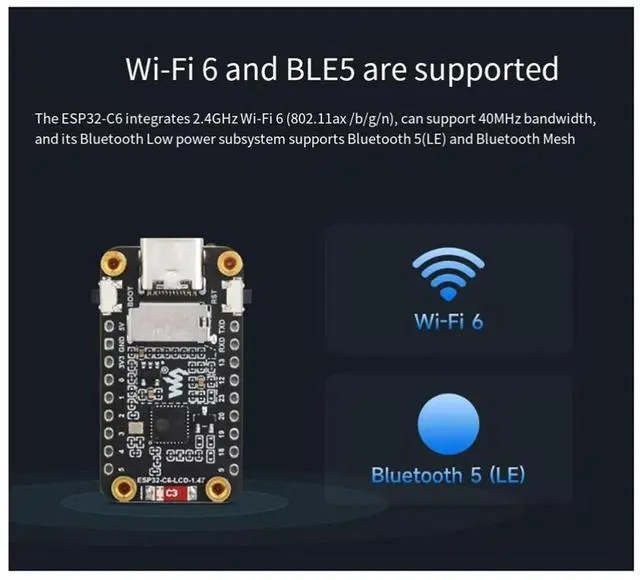 ESP32-C6 Lcd Screen Development Board 6 Bluetooth 5 Onboard Rgb Color 1.47 Inch Tft Led Screen USB Type-C Interface