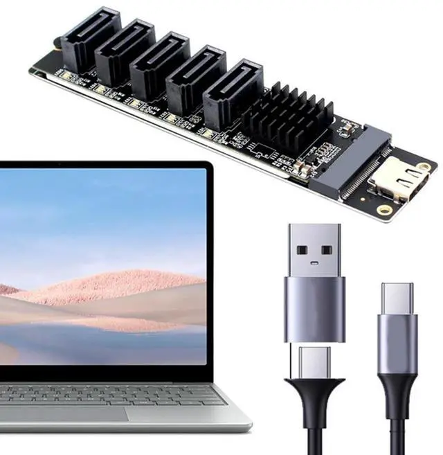 Type C to 5-Port SATA 3.0 Adapter Card 6Gbps JM575&JMS580 Chip USB C to SATA 3.0 Expansion Card Plug & Play Riser Card