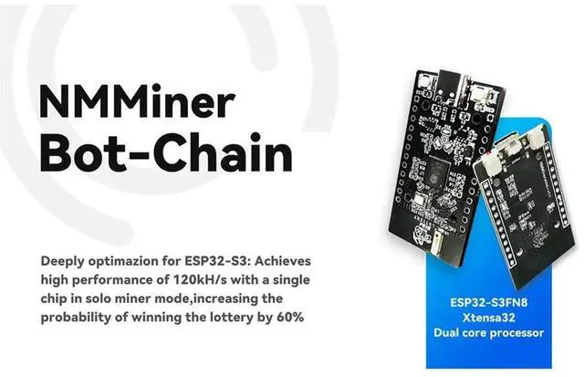 NM-Bot-Chain NMMiner Lucky BTC Solo Lottery Miner 120KH/S Higher Nerdminer V2 ESP32S3 Chain One By One Low Power 2Pcs
