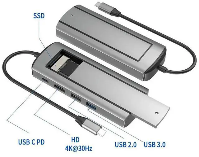 6-In-1 M.2 SSD HUB USB C Docking Station With Disk USB 3.0 Type C To Compatible- Laptop For Laptops