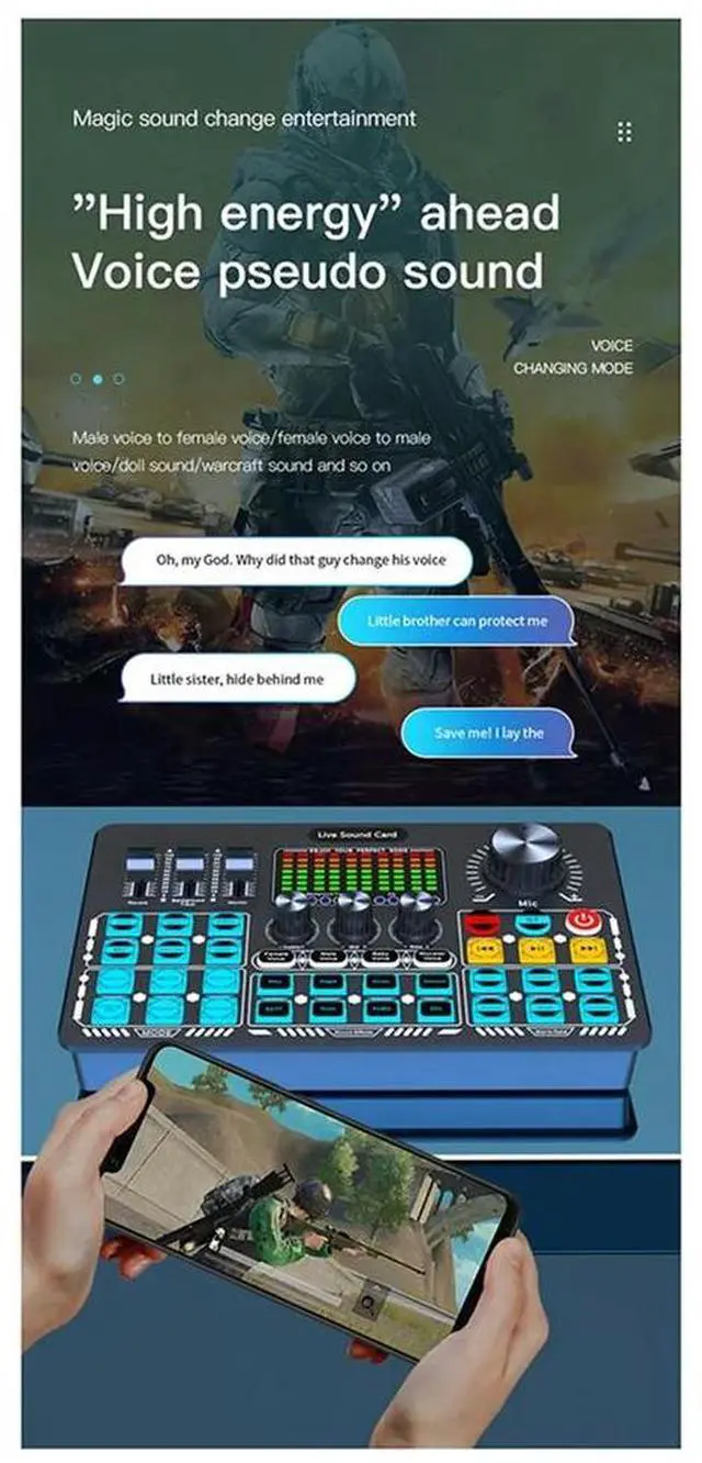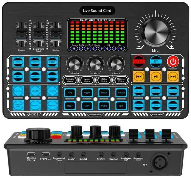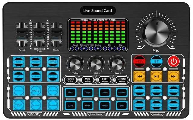 Q6S Live Sound Card Audio Interface with DJ Mixer Effects and Voice Changer Audio Mixing Console for Streaming