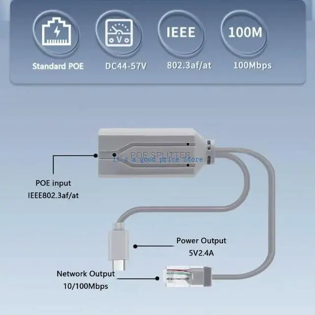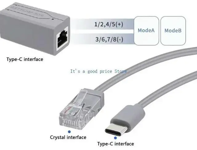 Type C PoE Splitter with RJ45 Port Type C Port 48V To 5V2.4A Power 10/100Mbps For NonPoE Devices IEEE802.3af Compliant