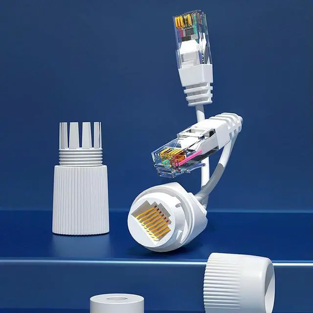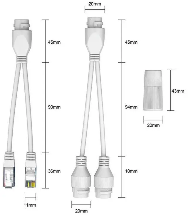 Waterproof Ethernet Splitter Ethernet PoE Splitter Combiner Adapter 2-in-1 Network Cabling Connector for Security Camera Install