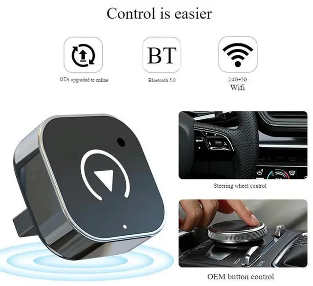 2 in 1 Wireless CarPlay Android Auto Adapter Wireless CarPlay Adapter Plug & Play Mini Carplay&Auto Box Dongle for Factory Wired