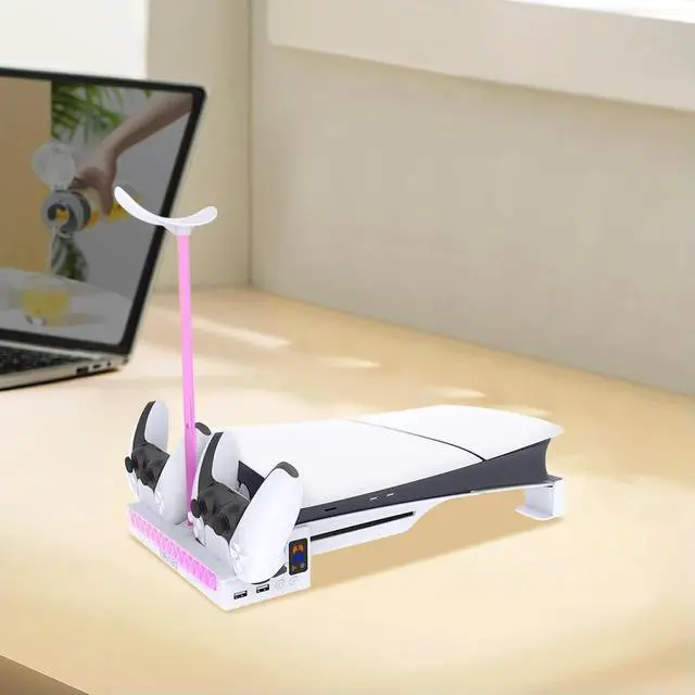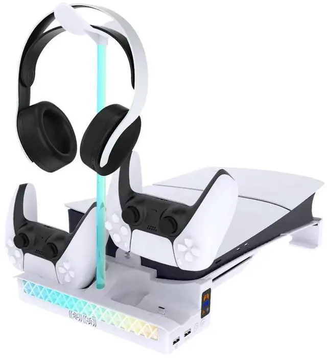 Horizontal Stand with Dual Controller Charger Base Stand for PS5 Slim Console for 5 Slim Disc & Editions