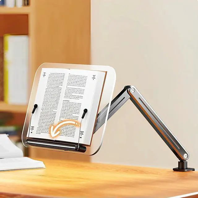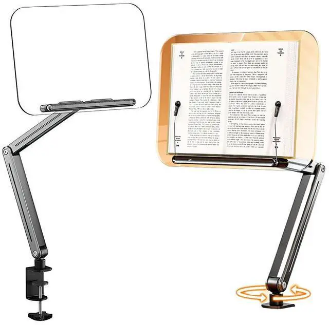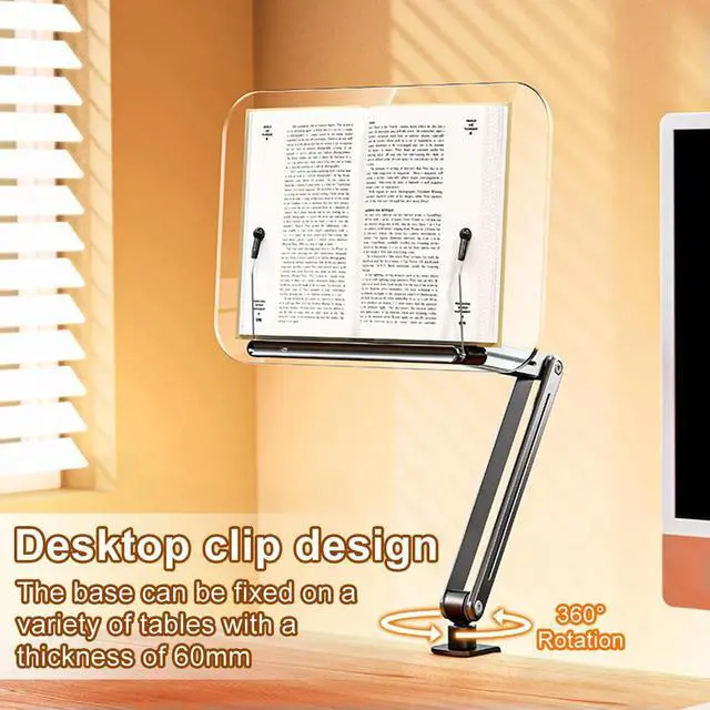 Acrylic Book Stand Adjustable Height Desk Clamp Book Stand 360° Rotating Portable Book Holder for Recipe Sheet Music Tablet