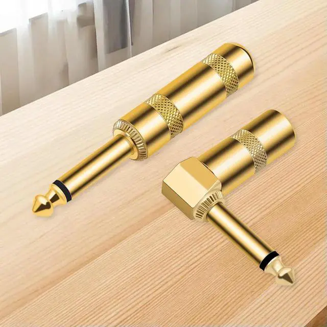 2Pcs 6.35mm Audio 1/4 Inch TS Plug DIY Audio Microphone Cable Straight Head Elbow Plug Guitar Cable Welding Plug for Home KTV