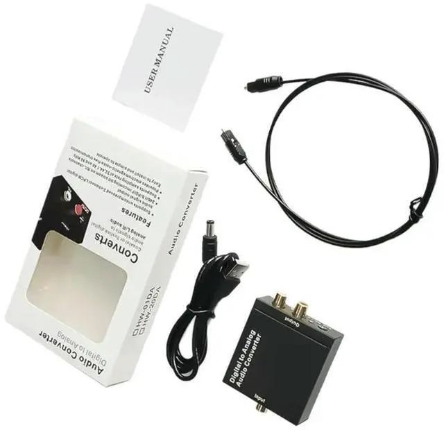 Portable 96KHz Digital to Analog Converter for Coaxial and SPDIF Toslink Inputs with 3.5mm Stereo Outputs Black
