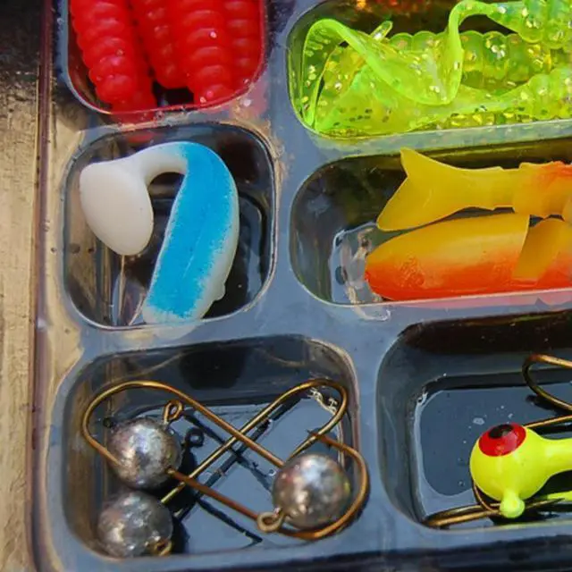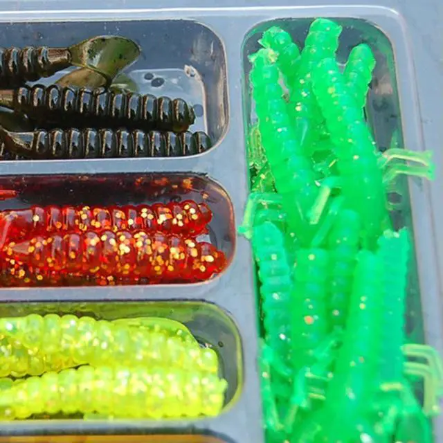35Pcs Soft Worm Fishing Baits Jig Head Hooks Simulation Lures