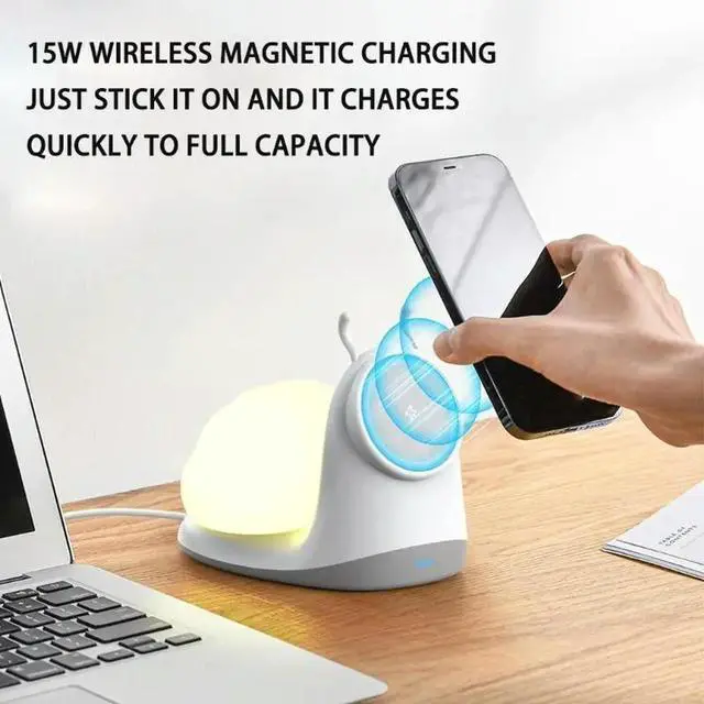 Wireless Charging With Adjustable Snail Night Light Detachable Portable LED Desk Lamp For Phone Bedroom Decor