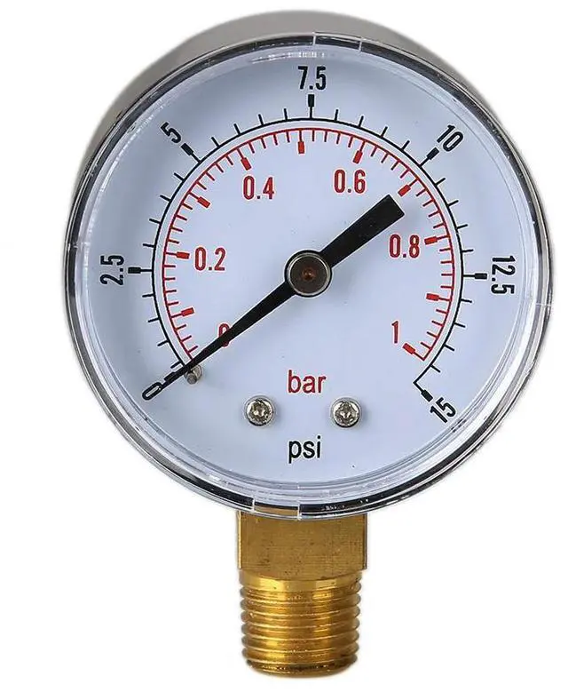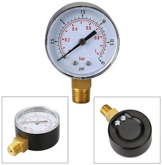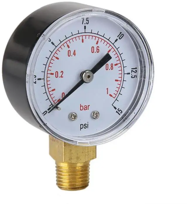 50mm 0-15 PSI Low Pressure Gauge 1/4 BSPT Bottom Mount Water Pressure Gauge Fuel Pressure Gauge for Air Gas Water Fuel Liquid