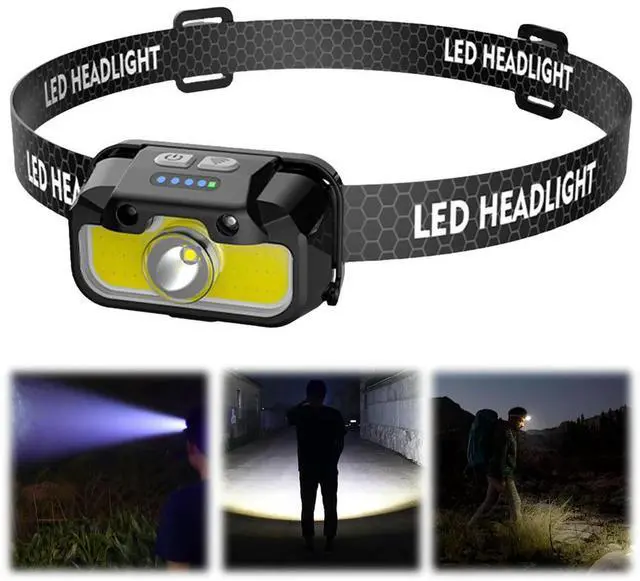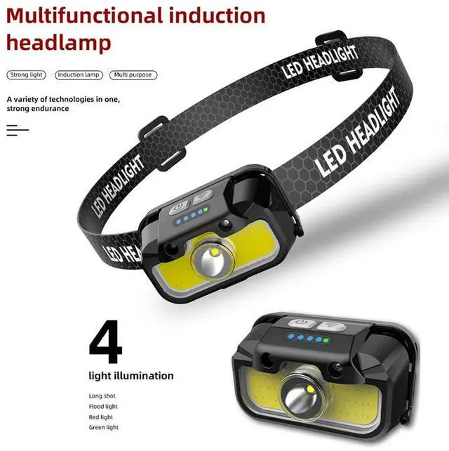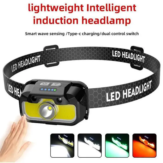 LED Motion Sensor Headlight with White Red Green Bright Head Lamp Adjustable Outdoor Head Flashlight for Running Jogging Fishing
