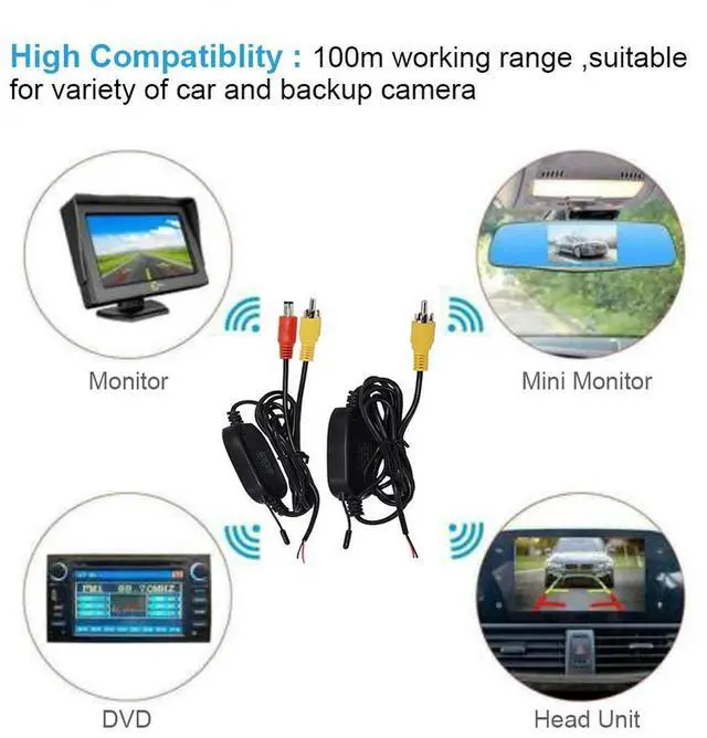 12V Wireless Color Video Transmitter Receiver 2.4G hz for Car Monitor Back Up Reverse Rear View Camera