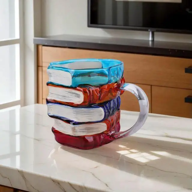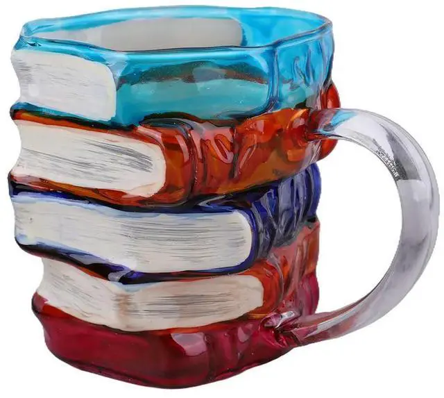3D Painted Books Coffee Mug Novelty Colored Glass Books Coffee Mug for Literature Lovers Collection Gifts