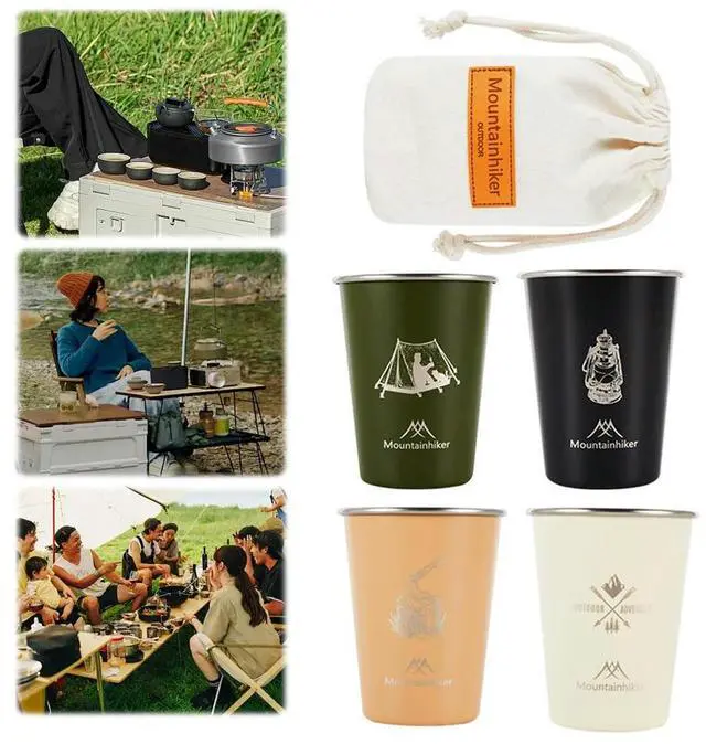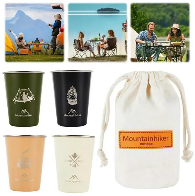 4Pcs 350ml Outdoor Camping Cup with Bag Tea Coffee Milk Mug Stainless Steel Portable Water Cup for Outdoor Barbecue