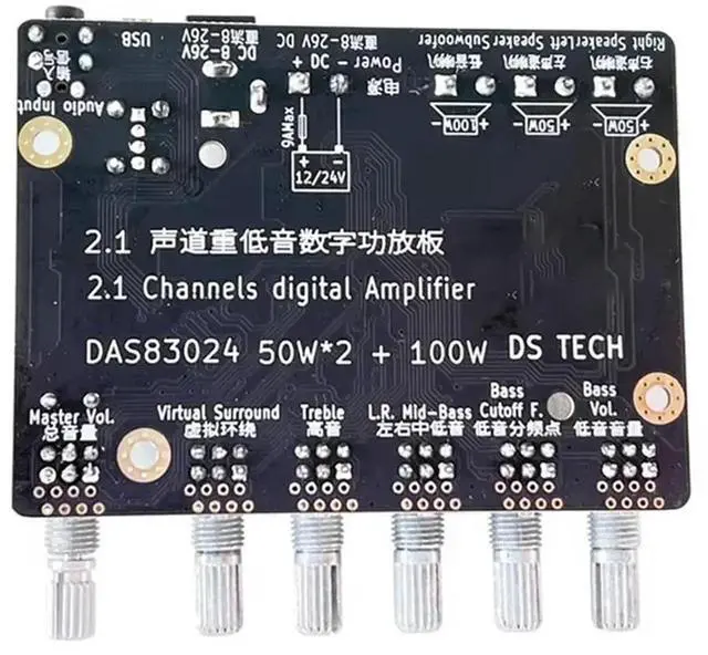 TPA3116 2X50w+ 100W Subwoofer Power Amplifier Bluetooth 2.1 Adjustable Frequency Divider Division Point Virtual Surround DC