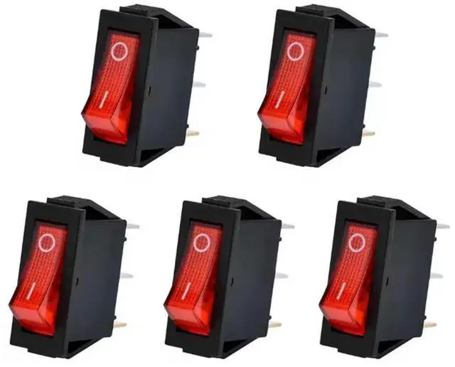 Mini Boat Red Lighted Rocker Switches 5Pcs Swtiches For Electric Fireplaces 3 Pin 2 Position On Off