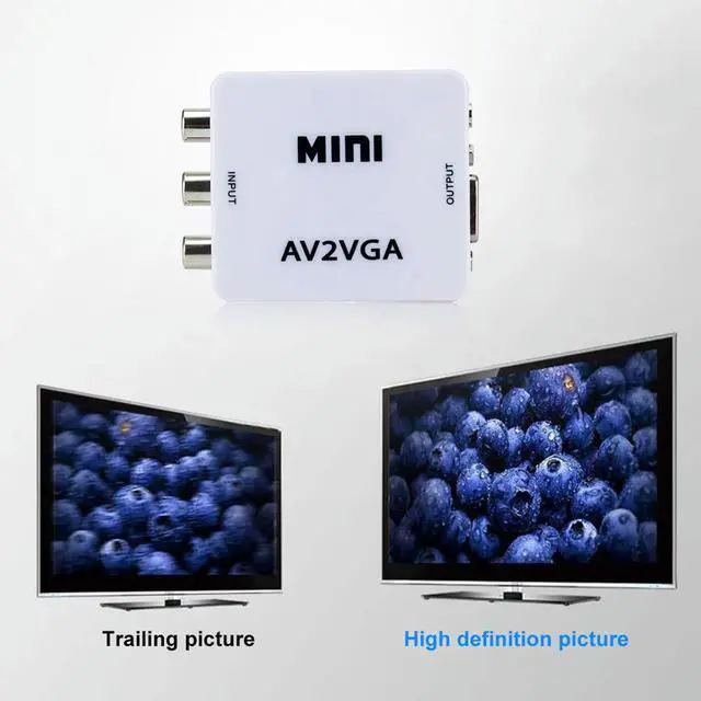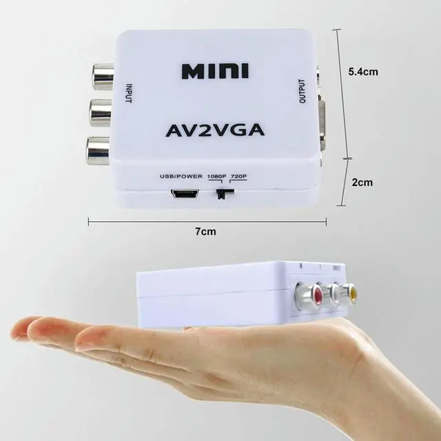 Mini AV RCA CVBS to VGA Video Converter Box with 3.5 mm Audio Output Plug Play Support 720P for PC HDTV Converter Game Console