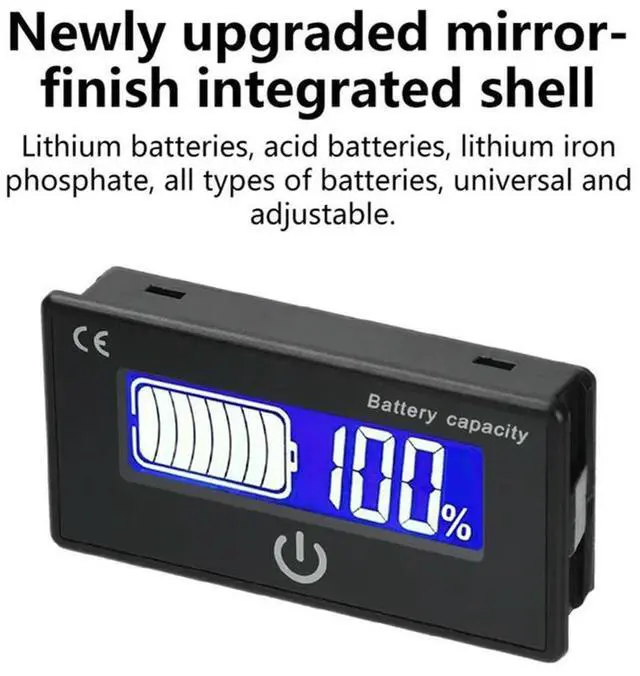 Li- Lifepo4 Lead Acid Capacity Indicator Tester Digital Voltmeter DC 8-100V Temperature Monitor 12V 24V 48V