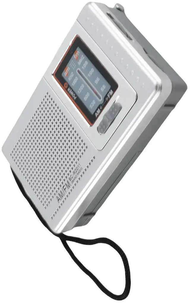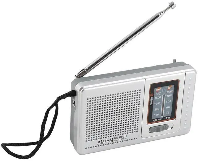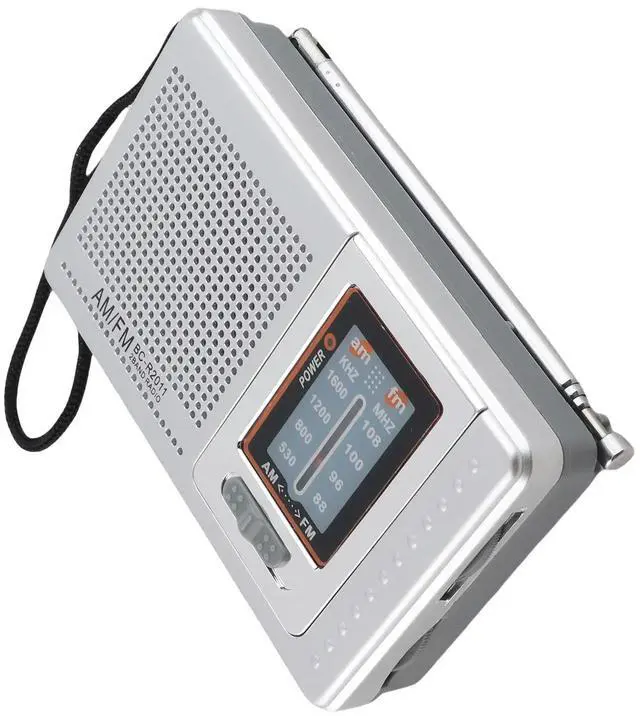 Premium Dual Band AM FM Operated Built-in Speaker Portable Pocket Radio High Sensitivity for Outdoor Travel Silver Grey
